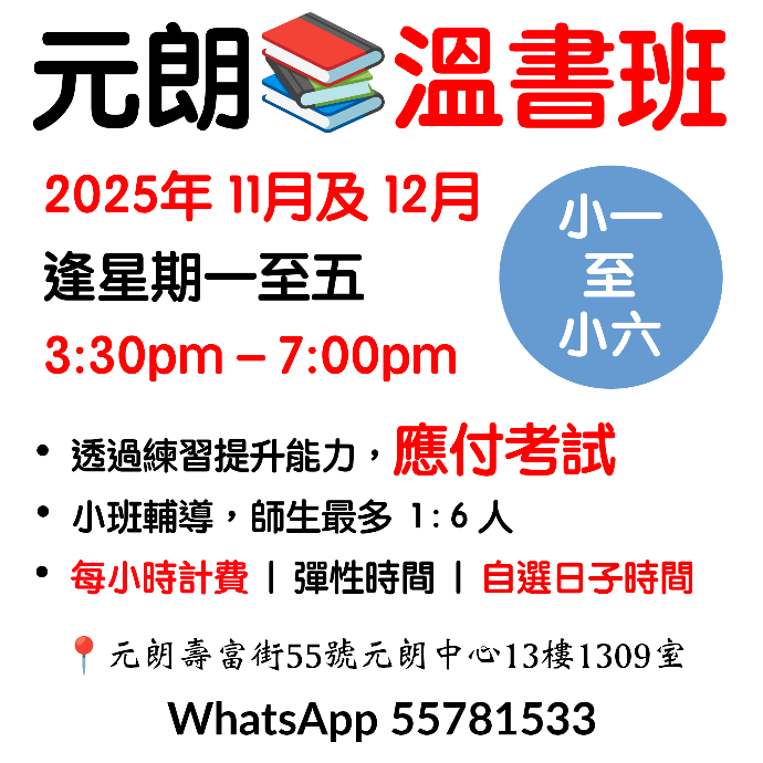 地點:愛因思考 學習空間 (📍元朗壽富街55號元朗中心13樓1309室)
